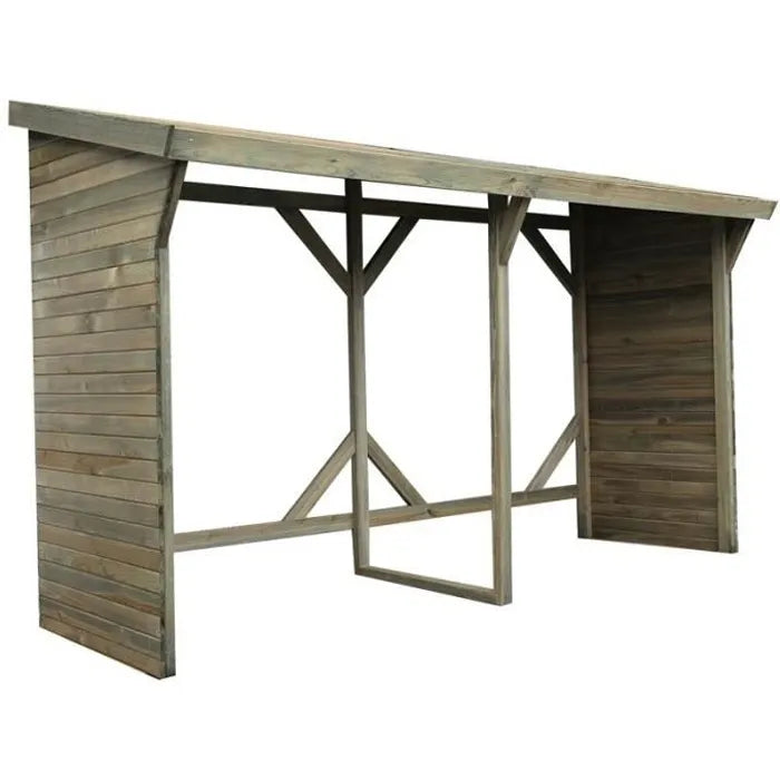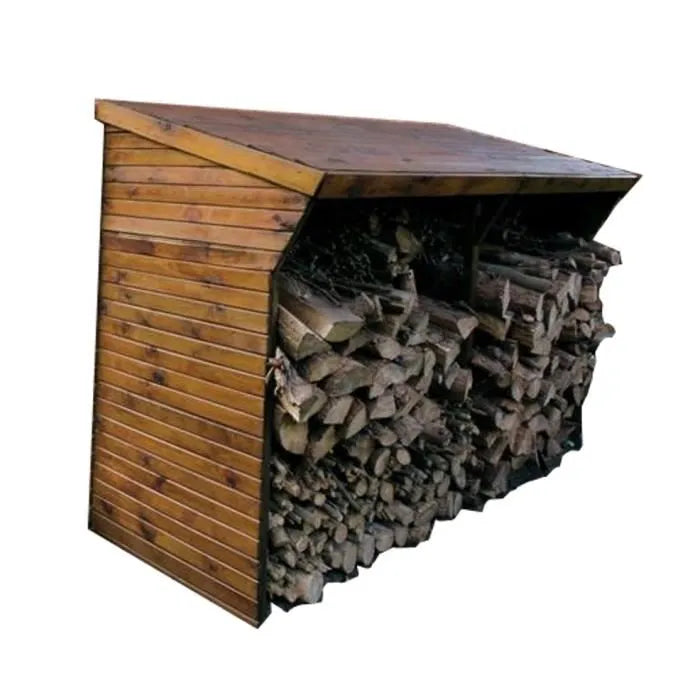 Der Brennholz-Unterstand Ottawa in Braun, ausgelegt für bis zu 5 Ster Holz, bietet eine robuste und langlebige Lösung, um Ihr Holz vor Witterungseinflüssen zu schützen. Die stabile Konstruktion sorgt für gute Belüftung, reduziert Feuchtigkeit und hält das Holz stets trocken und einsatzbereit. Ideal für eine optimale Lagerung Ihres Brennholzbestands.